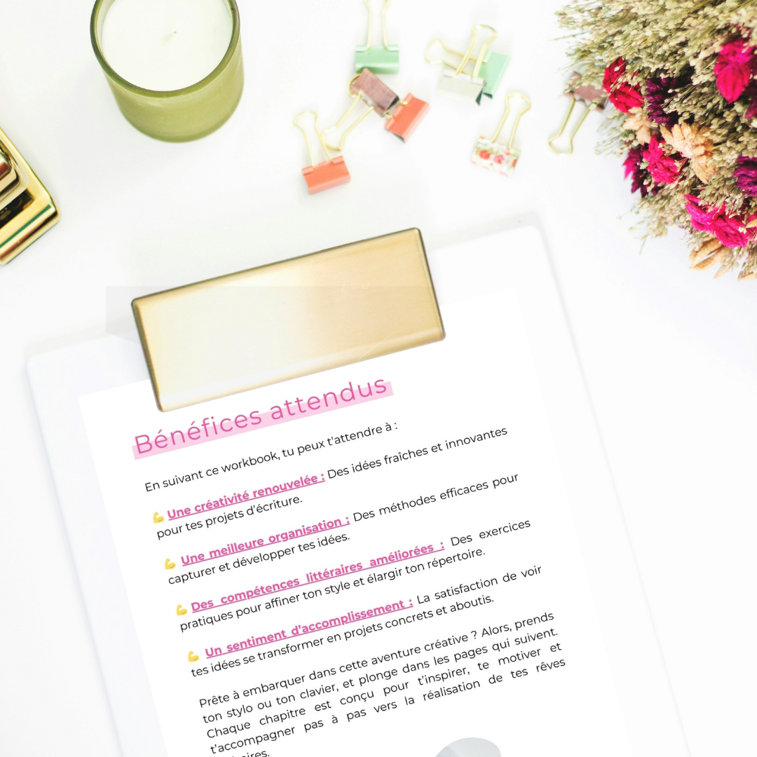 L'écriture est un art qui demande autant d'inspiration que de discipline. Parfois, trouver des idées ou les exploiter au mieux peut sembler être un défi insurmontable. Ce workbook est là pour te guider, te motiver et t’équiper des outils nécessaires pour faire face à ces défis avec confiance et créativité.